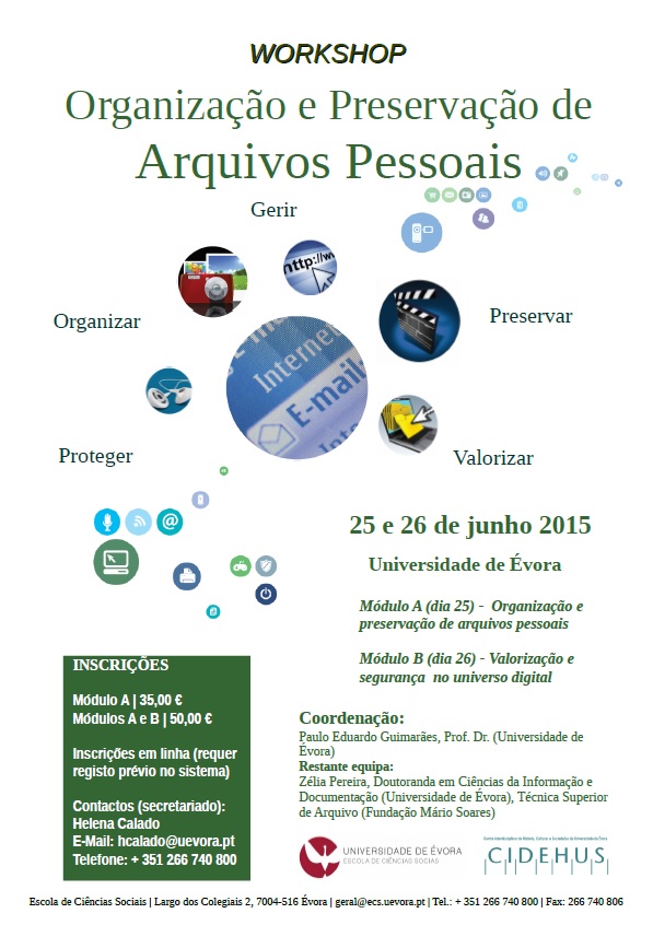 Os arquivos pessoais são uma importante fonte de informação para a memória individual e coletiva, mas a sua preservação depende da devida organização e salvaguarda. Fotografias, vídeos, cartas e outros documentos, produzidos e armazenados pelas pessoas, só podem ser geridos de forma eficaz e transmitidos às futuras gerações se cada um de nós souber assegurar, no presente, um conjunto de ações básicas com esse fim.